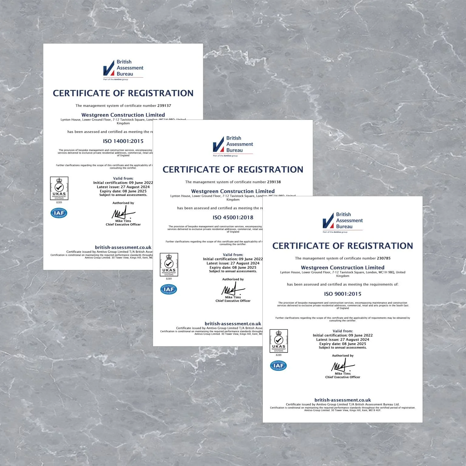 We are proud to announce that following a recent 6-day company-wide ISO Audit, Westgreen Construction Ltd retain our ISO 9001:2015,14001:2015 and 45001:2018 certifications.